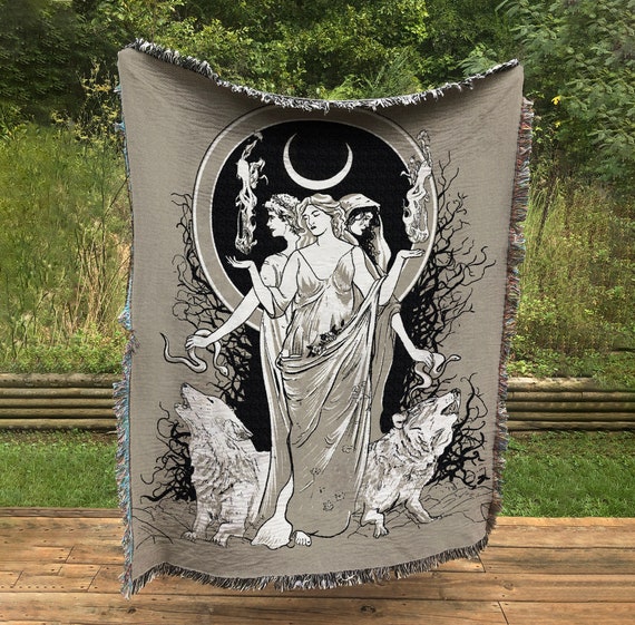 Moon Goddess Hecate Woven Throw Blanket - Wiccan Woven Tapestry - Hekate Witchy Blanket by Printagrams