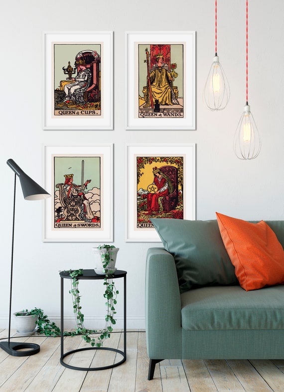 All Four Queens Tarot Card Print Set - The Queen of Cups, Queen of Swords, Queen of Wands, Queen of Pentacles Posters, No Frame by Printagrams