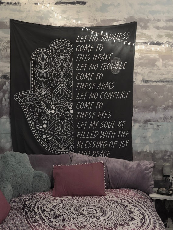 Hamsa Sign Tapestry Black and White Hamsa Wall Hanging Meditation Yoga Grunge Hippie by DesignBohemian