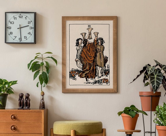The 3 Of Cups- Tarot Card Print - The Three Of Cups Card Neutral Vibe Poster, No Frame by Printagrams
