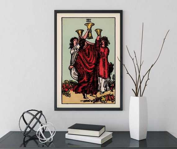 3 of Cups- Tarot Card Print - The Three of Cups Card Poster, No Frame by Printagrams