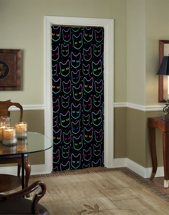 Cats Curtain - Esoteric Curtain - Neon Cats - Curtain - Door Panel - Moon Alchemy Design Bohemian Art by DesignBohemian