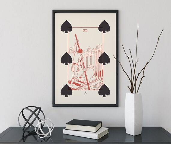 Six of Swords Spades- Tarot Card Print - The 6 Of Spades Swords Playing Card Poster, No Frame by Printagrams