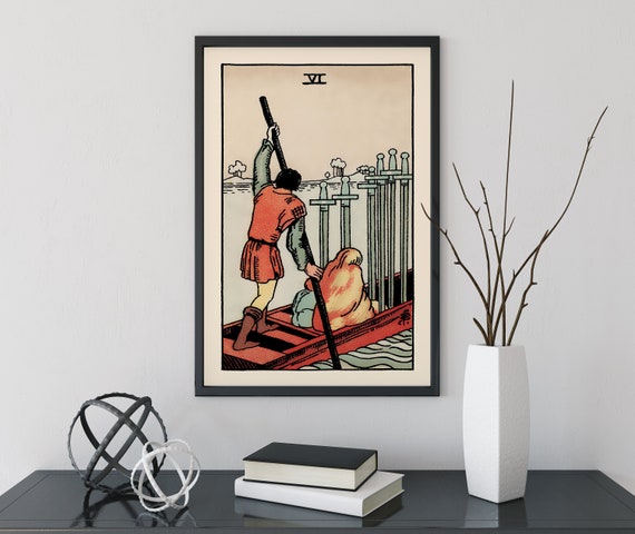 Six Of Swords- Tarot Card Print - The 6 Of Swords Card Poster, No Frame by Printagrams