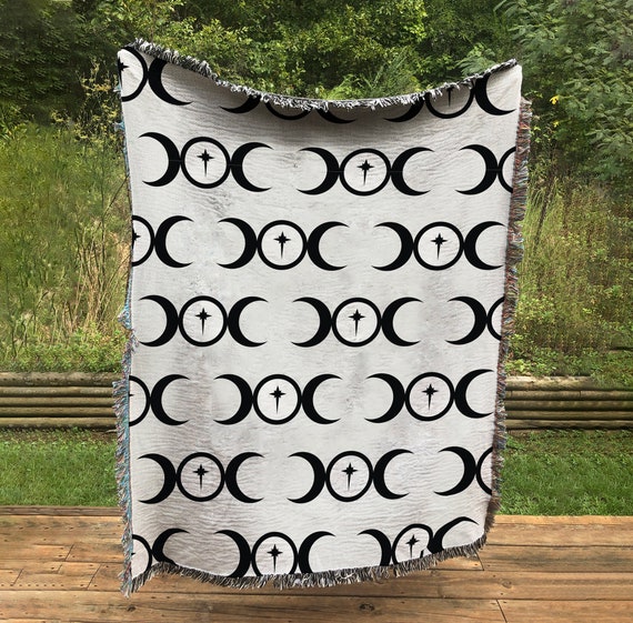 Jacquard Woven - Moon Goddess Blanket - Woven Hecate Blanket - Triple Goddess - Cotton Meditation Yoga Grunge Hippie by DesignBohemian