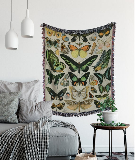 Vintage Butterfly Blanket - Woven Butterfly Wall Hanging - Cotton Woven Throw - Adolphe Millot - Nouveau Larousse by DesignBohemian