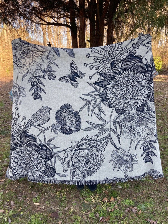 Art Deco - Floral Woven Blanket - Vintage Tapestry, Woven Flower Throw - Vintage Flower Bohemian Blanket - in Cotton by DesignBohemian