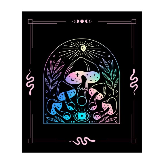 Mushrooms Holographic Png - Digital Design - Esoteric Digital - moon and mushrooms holographic sticker design by DreamersPlan