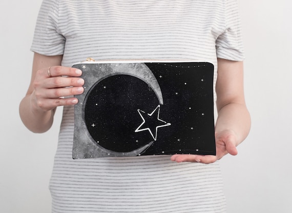 Gothic Moon Bag - Tarot Bag - Wiccan Bag - Moon and Stars Pouch - Black Moon Bag - Custom by DesignBohemian