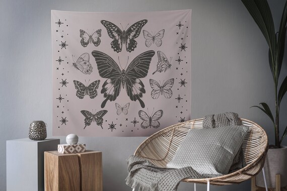 PINK Butterfly Tapestry Wall Hanging Black and white Meditation Yoga Grunge Hippie by DesignBohemian