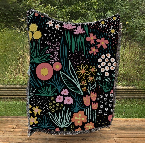 Scandinavian Floral - Jacquard Woven - Wildflower Woven Tapestry - Floral Throw - Bohemian Blanket in Cotton for Meditation or Yoga by DesignBohemian