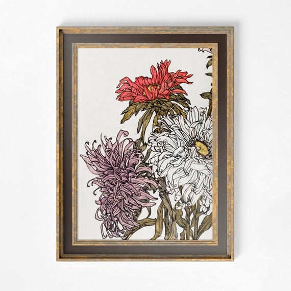 Art Nouveau Poster Floral Print Bohemian Print Large Artwork - Chrysanthemums by Julie de Graag by DesignBohemian