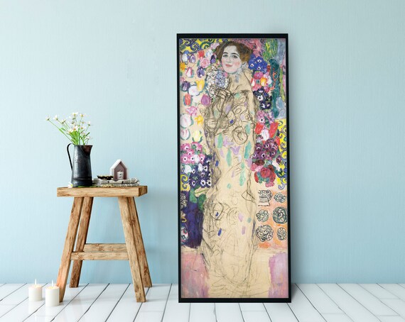 Gustav Klimt's Portrait of Maria Munk - Art Nouveau Poster - Bohemian Lady - Print Large Artwork - Floral - Long Poster by DesignBohemian