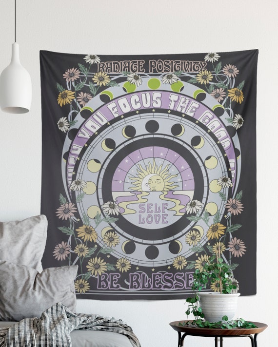 Hippy Tapestry - Purple Retro Tapestry - Blessed - Wall Hanging Meditation Yoga Grunge Hippie - Sun and Moon Tapestry by DesignBohemian