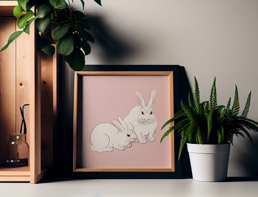 Cute Vintage Rabbits Print - Square Pink Print - vintage Japanese print by Ohara Koson by DesignBohemian