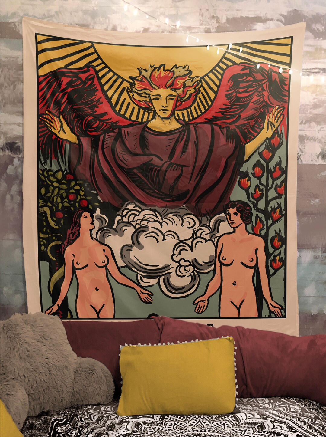 The Lovers Tarot Card Tapestry - The Lesbian Lovers Tapestry Tarot Card Art