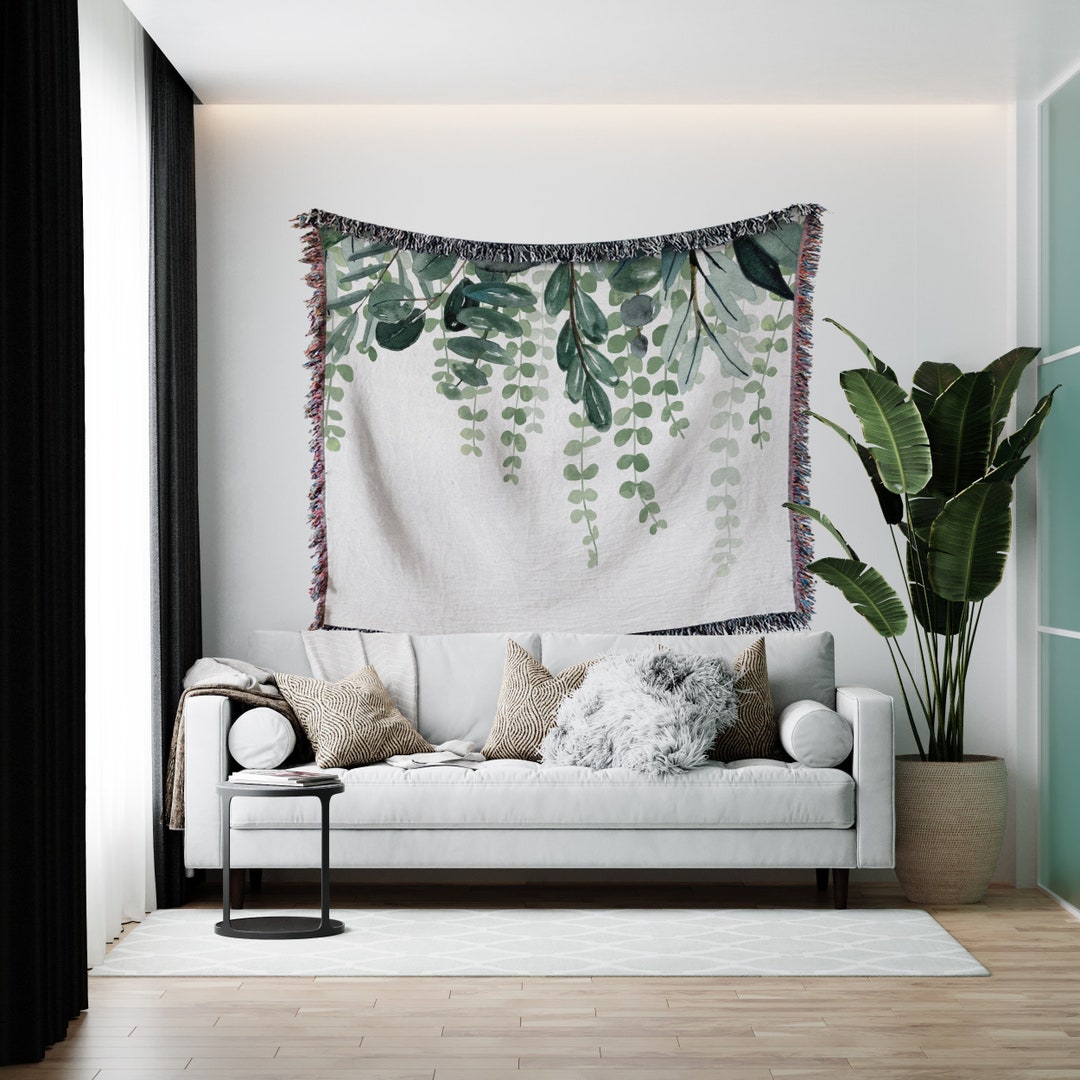 Eucalyptus Tapestry, Woven Greenery Throw - Plants Woven Blanket by DesignBohemian