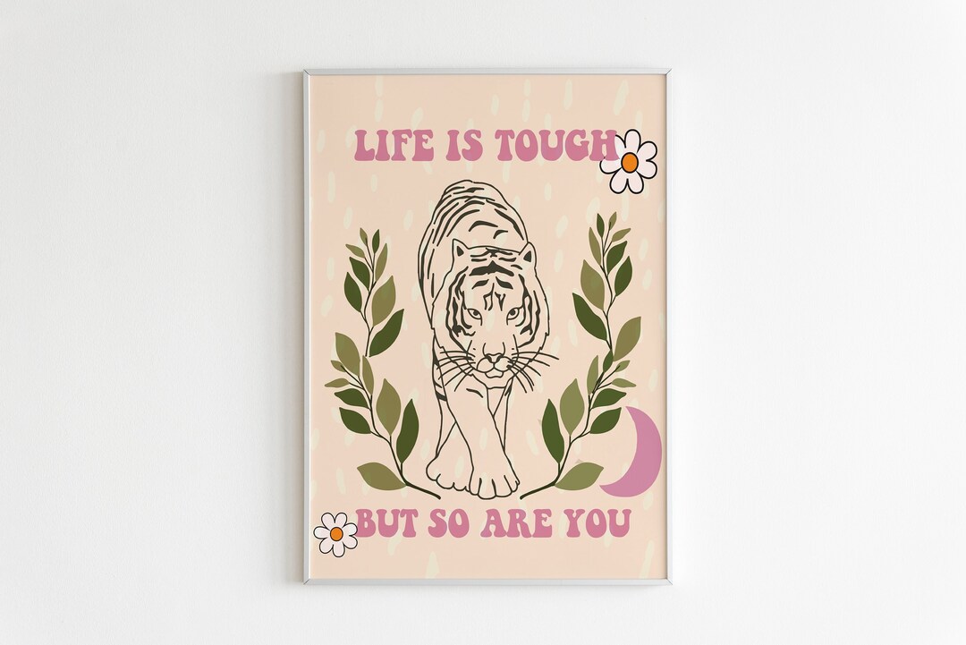 Retro Tiger Print - Pink Tiger Print - Hippy Poster - Digital Download - Retro Print - Life is Tough but so are You