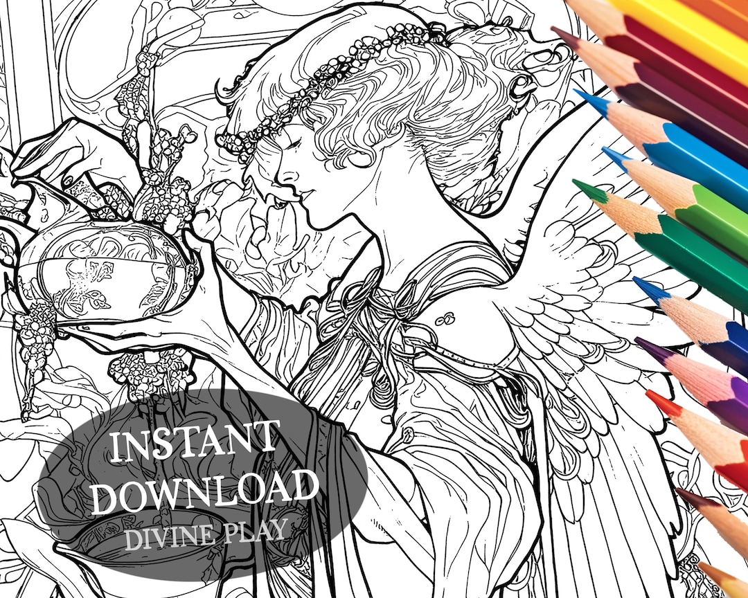 The Temperance Card Coloring Book Page - Tarot Card - Download Printable High Quality Tarot Card Instant Download JPG Tarot Card Printable by divineandplayart