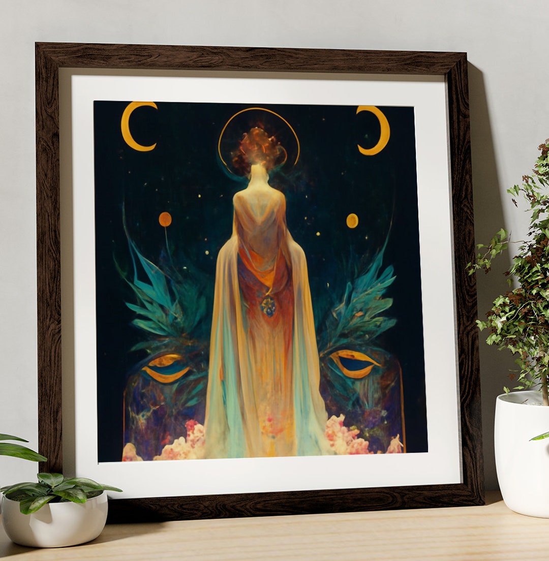 Goddess Painting - Nouveau Goddess - Harvest Moon Goddess - Digital Download - Flowers and Moon goddess - Large Print by DreamersPlan