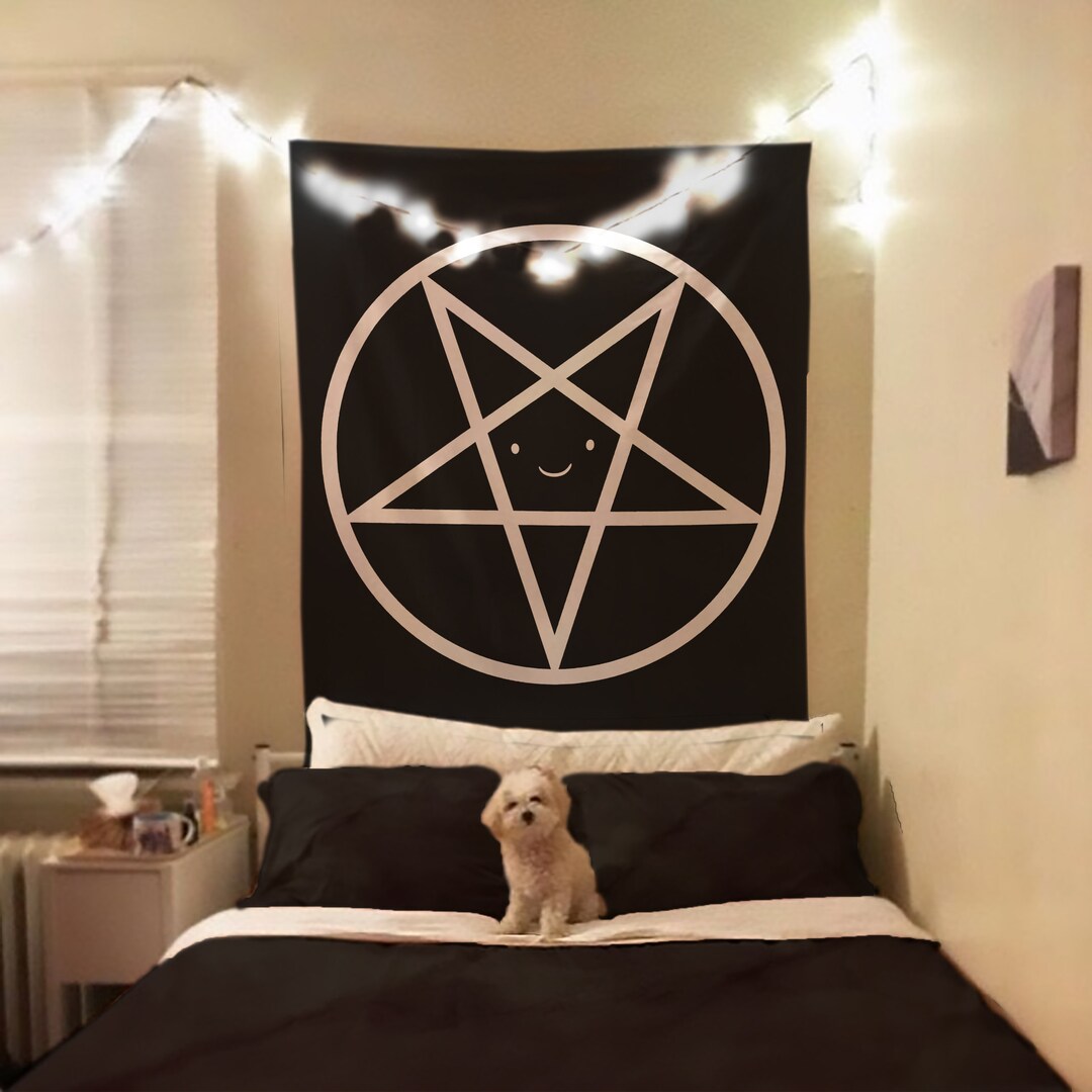Happy Pentagram Tapestry, Black Magic Tapestry, Occult Tapestry Pale Goth Tapestry, Black Girl Magic by Printagrams