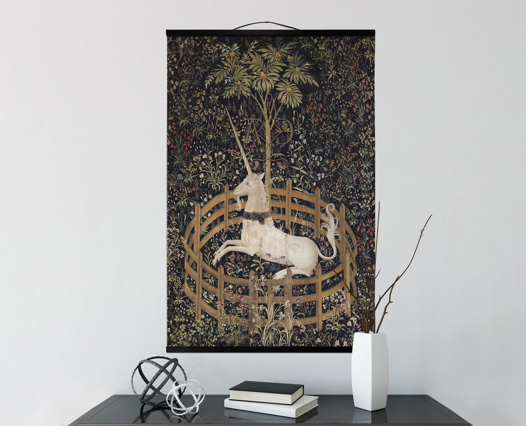 Medieval Unicorn Tapestry - The Unicorn in Captivity Canvas Wall Hanging - Tapestry Poster Print by Printagrams