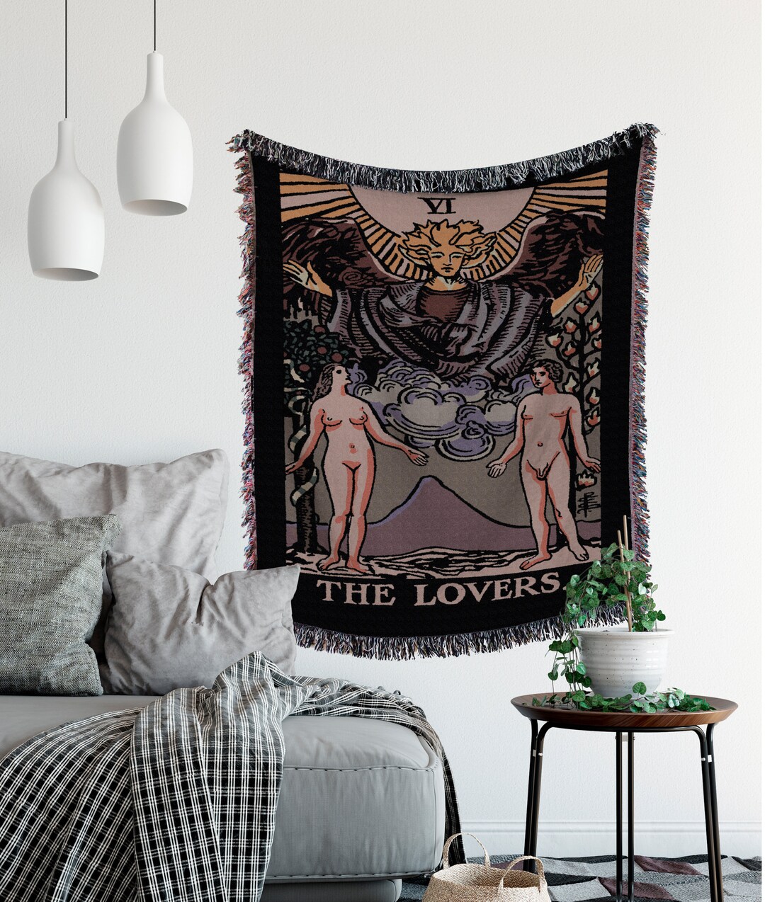The Lovers- Tarot Card Blanket- The Lovers Card Neutral Vibe Woven Throw Blanket Tapestry by Printagrams