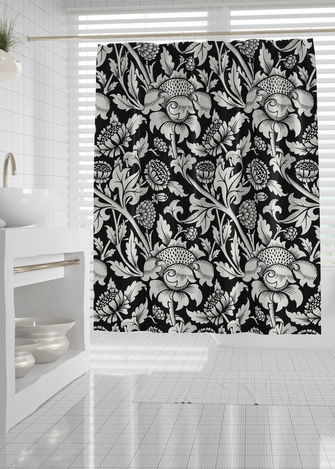 Vintage Floral Shower Curtain - Black and White - shower curtain in black and white by DesignBohemian