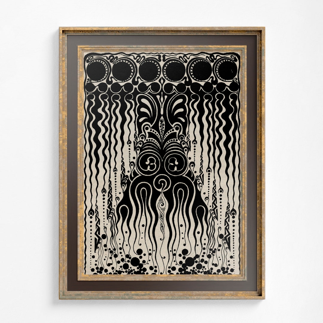 Art Nouveau Poster - Vintage Design - Moon Phase Print Bohemian Print Large Artwork - Beige and Black by DesignBohemian
