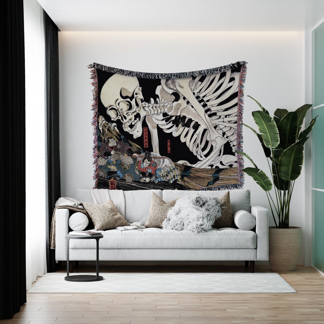 50 x 60 inch Woven Cotton Blanket - The Witch and the Skeleton Spectre Tapestry