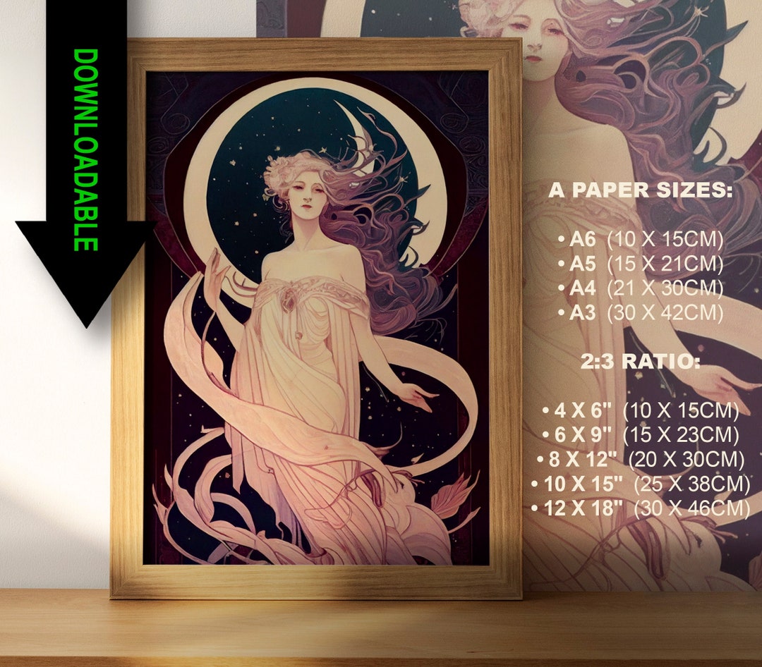 Moon Goddess Download Printable High Quality Instant Download JPG Tarot Card Printable by divineandplayart