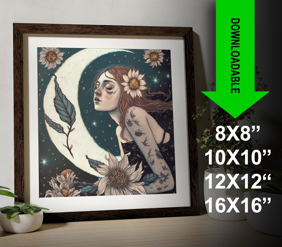 Moon Goddess - Moon Girl Download Printable High Quality Instant Download JPG Tarot Card Printable by divineandplayart