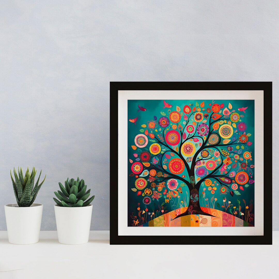 Floral Folk Art Tree Print - Mandala Folk Art - Folk Floral Poster - Bright Colors - High Quality Printable Art by DreamersPlan
