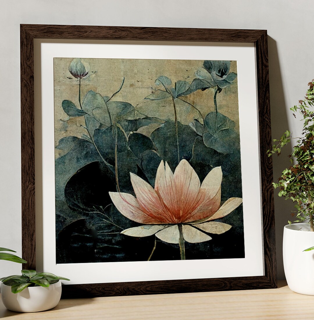 Vintage Japan Lotus Painting - Digital Download - Pink Lotus - Large Print by DreamersPlan