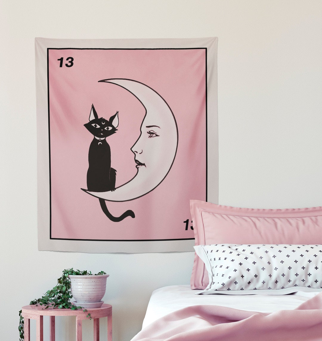 La Luna Cartoon Cat Card Moon Pink Tapestry by Printagrams