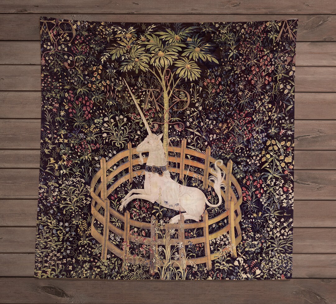 Medieval Unicorn Altar Cloth - The Unicorn In Captivity 24 x 24 inches Tarot Cloth (Printed) by Printagrams
