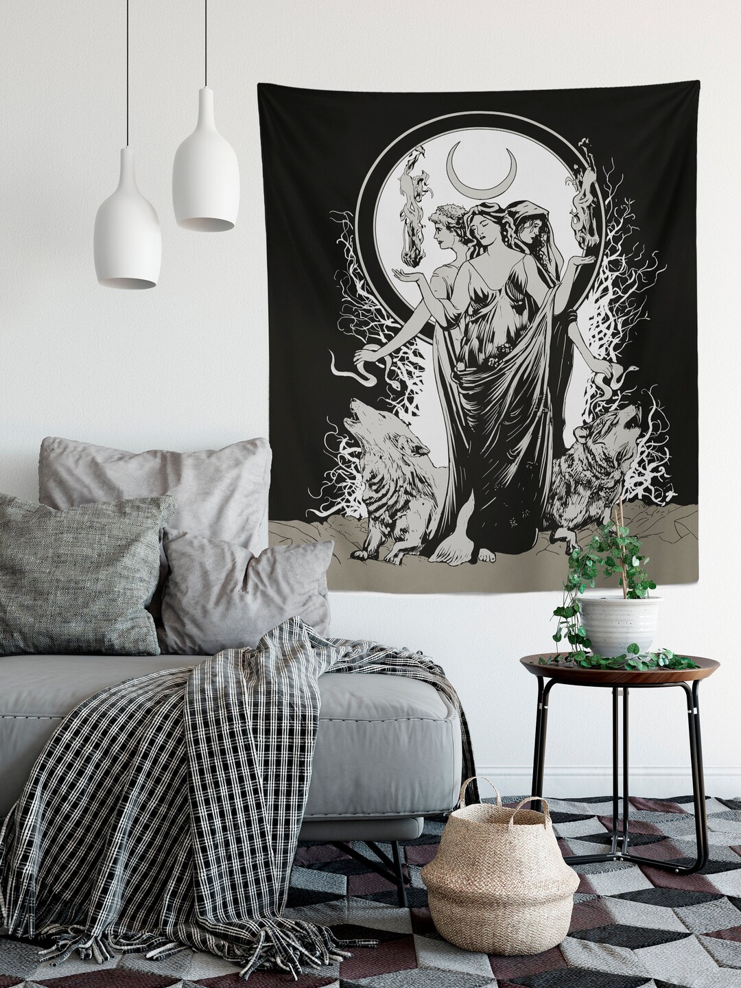 Moon Goddess Hecate Tapestry - Wiccan Tapestry - Hekate Witchy Tapestry by Printagrams