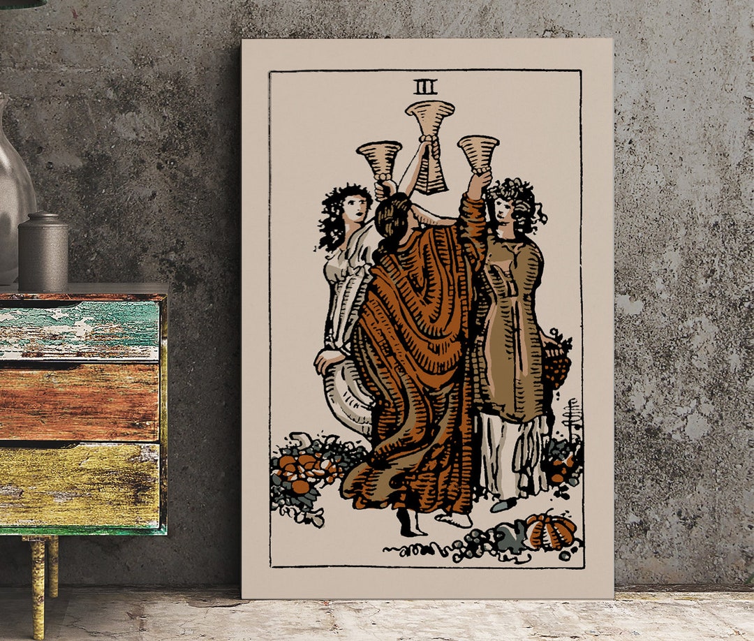 The 3 Of Cups- Tarot Card Print - The Three Of Cups Card Neutral Vibe Poster Eclectic Tarot, No Frame by Printagrams