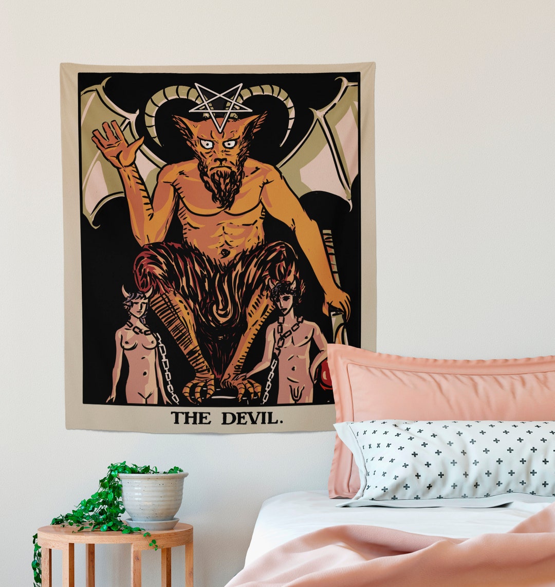 The Devil Tarot Card Tapestry - Rider Waite Devil Tapestry Harvest Tarot by Printagrams