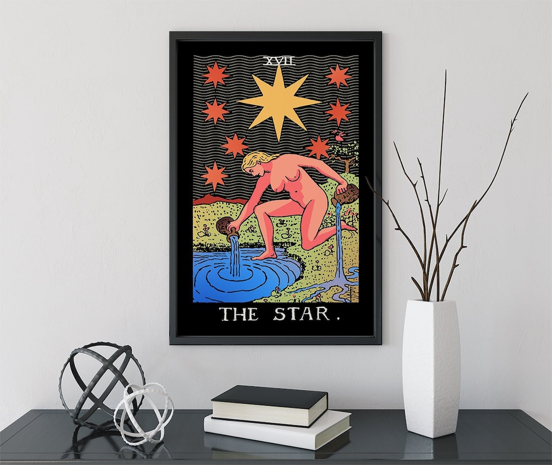 The Star - Tarot Card Print - The Star Black and Colorful Tarot Card Poster, No Frame by Printagrams