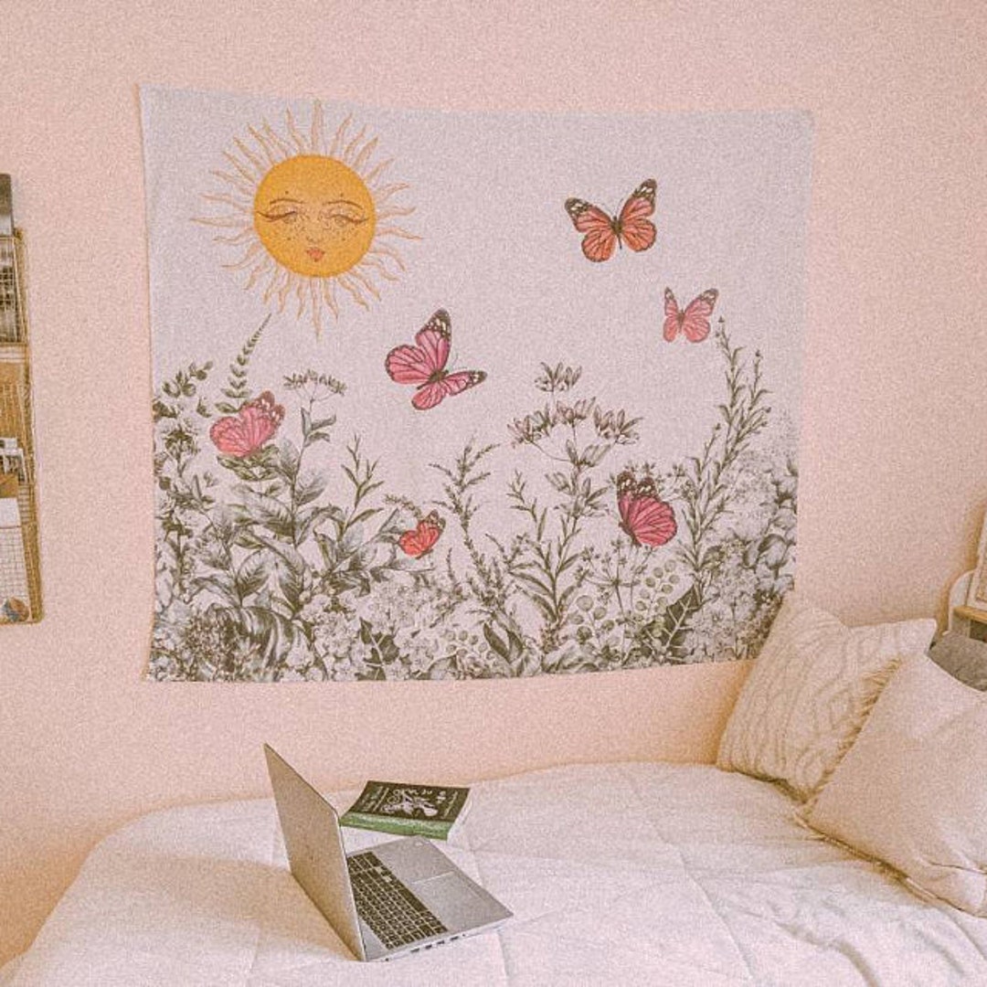 Vintage Sun And Butterfly Tapestry Wall Hanging Butterfly Art by DesignBohemian