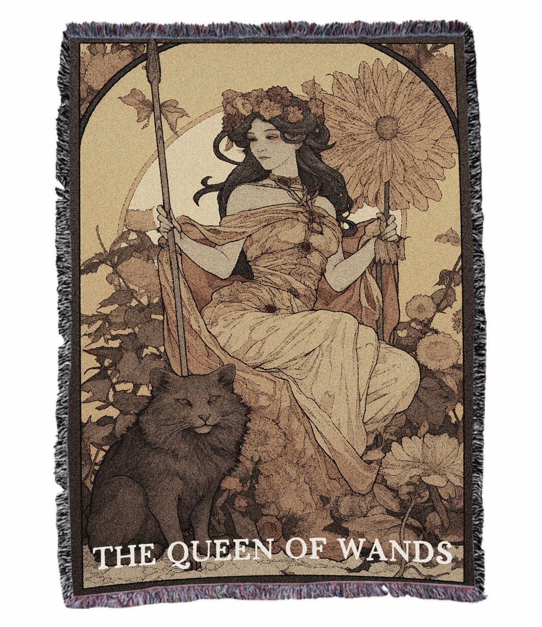 Queen of Wands Woven Blanket, Queen of Wands Tarot, Tarot Card Blanket by divineandplayart