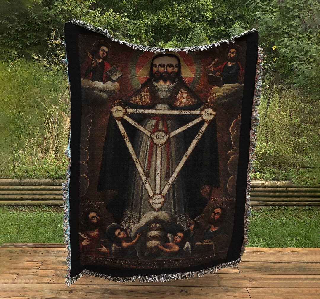 Jesus and the Trifacial Trinity Woven Throw Blanket Tapestry by Printagrams