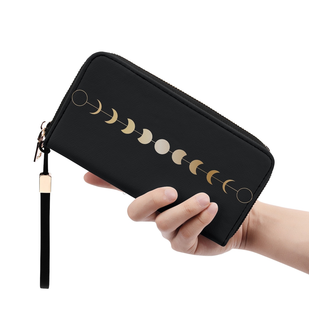 Moon Phase Wallet - Black and Gold - Gothic Wallet - Casual Clutch Wallet by serenitygiftart