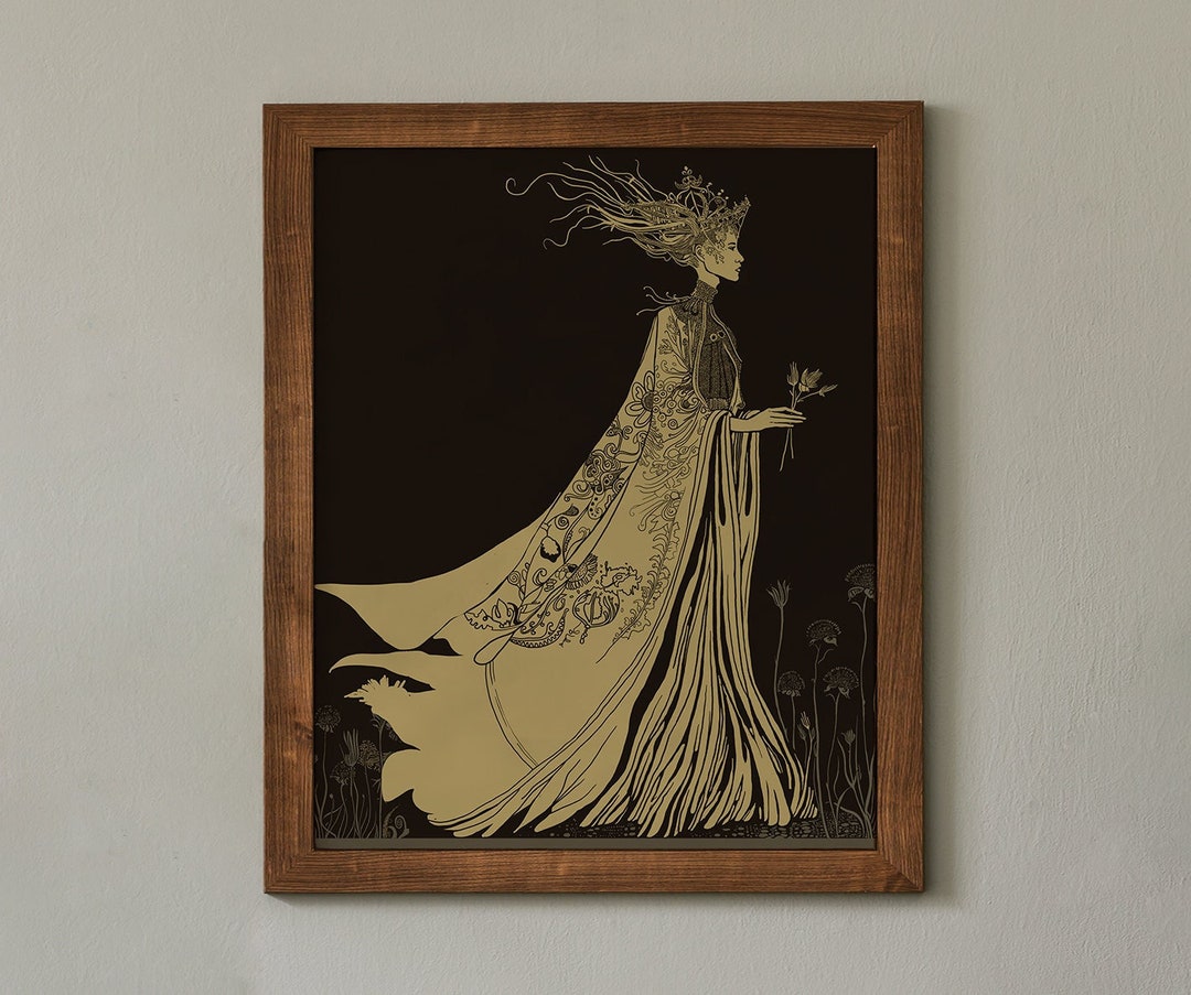 Mother Earth Art - Hand Drawn Print, Mother Earth, Dark Academia, Beige and Gold (No Frame) by Printagrams