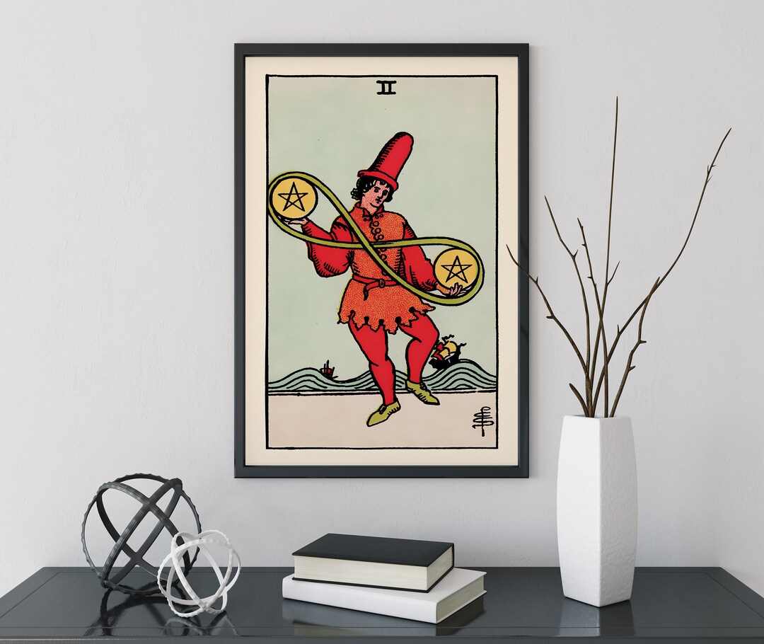 Two of Pentacles- Tarot Card Art - The Two of Pentacles Card Poster, No Frame