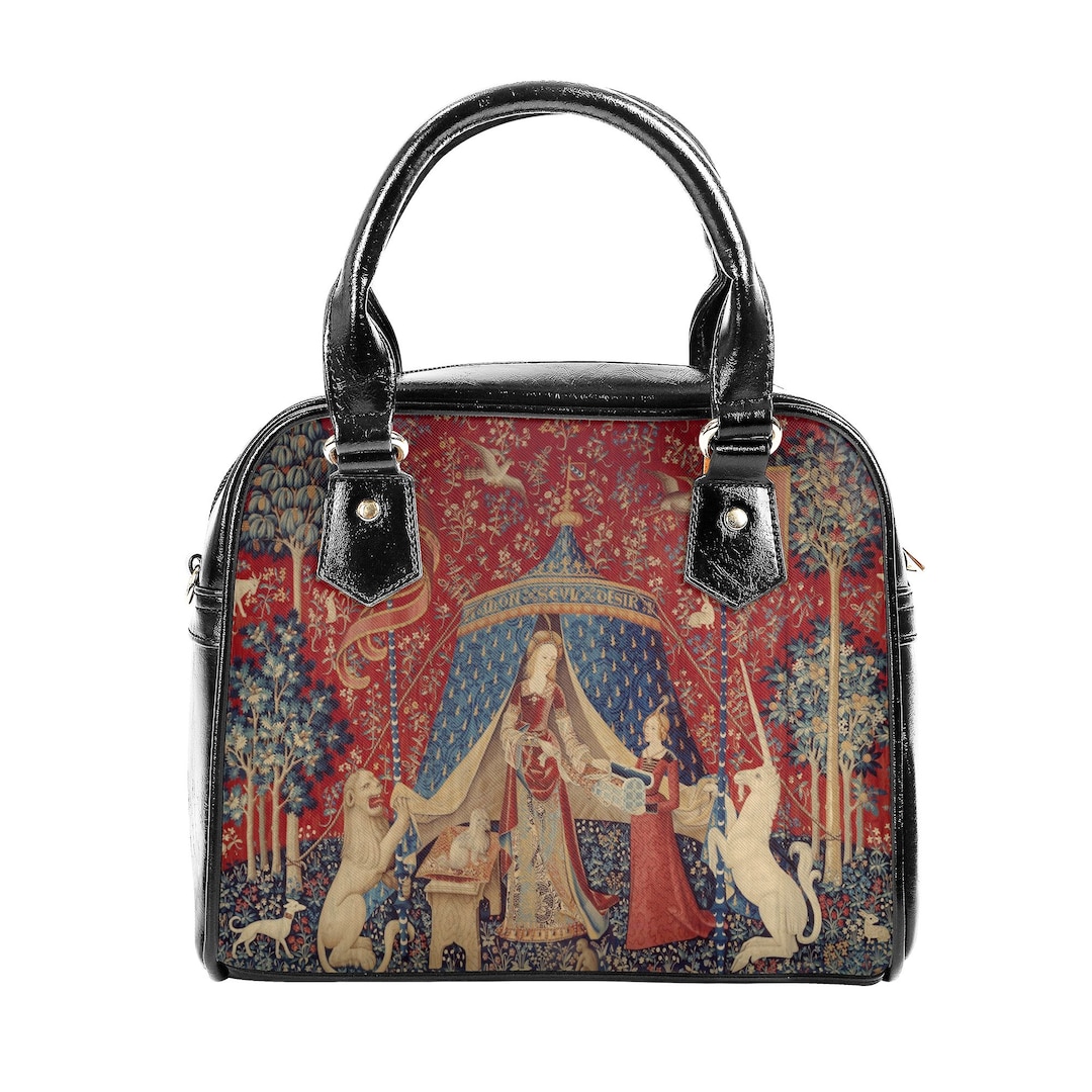 Lady with Unicorn Handbag - Vintage Unicorn Purse - Medieval Unicorn - Vegan Leather Shoulder Handbag by divineandplayart