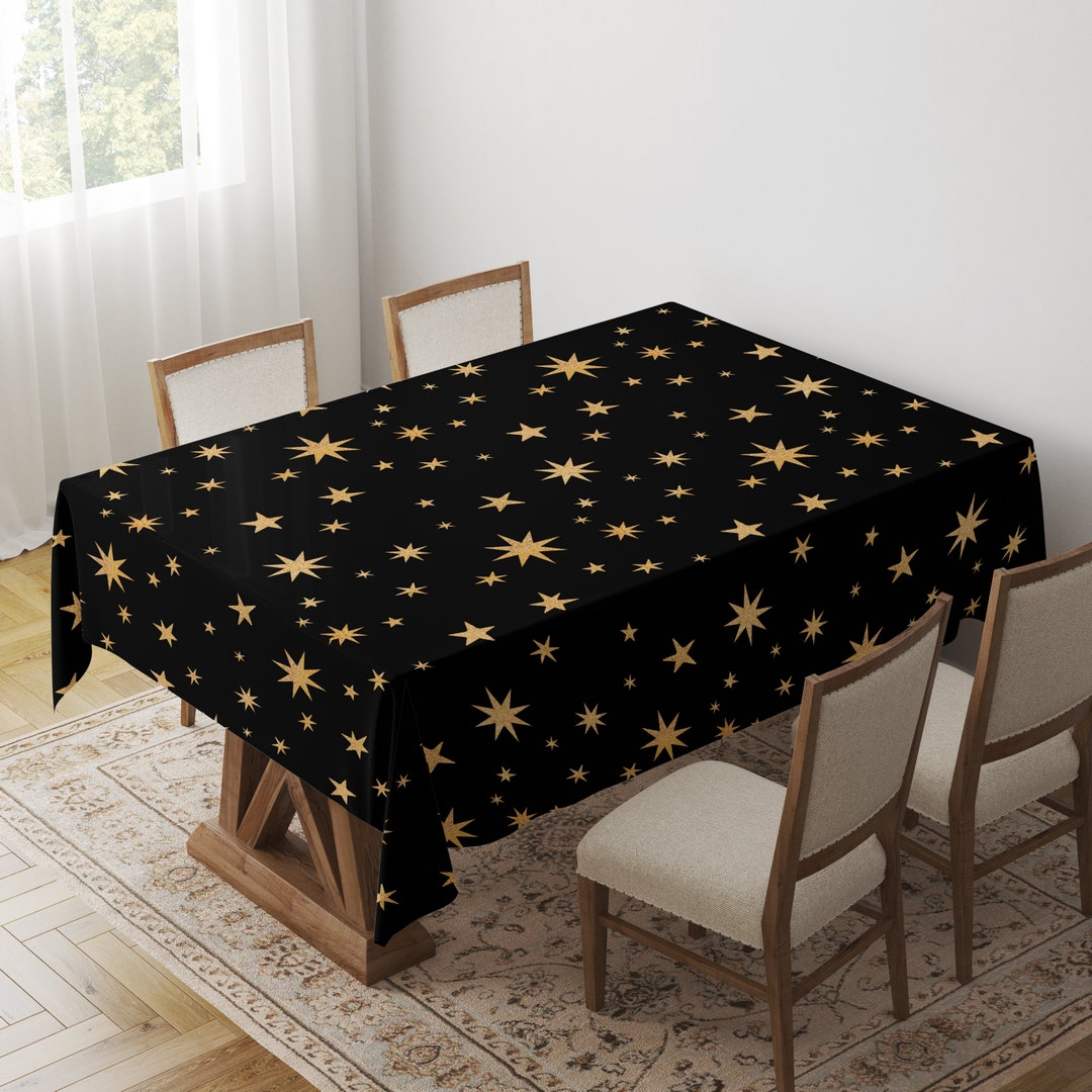Stars Tablecloth - Rectangle and Square - Black and Gold Design - Halloween Table Cloth - All Cotton by DesignBohemian
