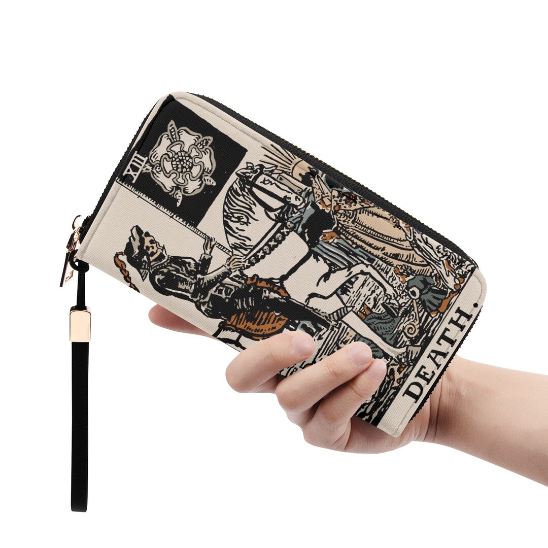 Introducing our Tarot Zipper Wallet featuring original art inspired by the iconic Death card from the Rider-Waite Tarot deck. Embrace the mystique and symbolism of the Tarot with this captivating piece, meticulously crafted to capture the essence of transformation and renewal.