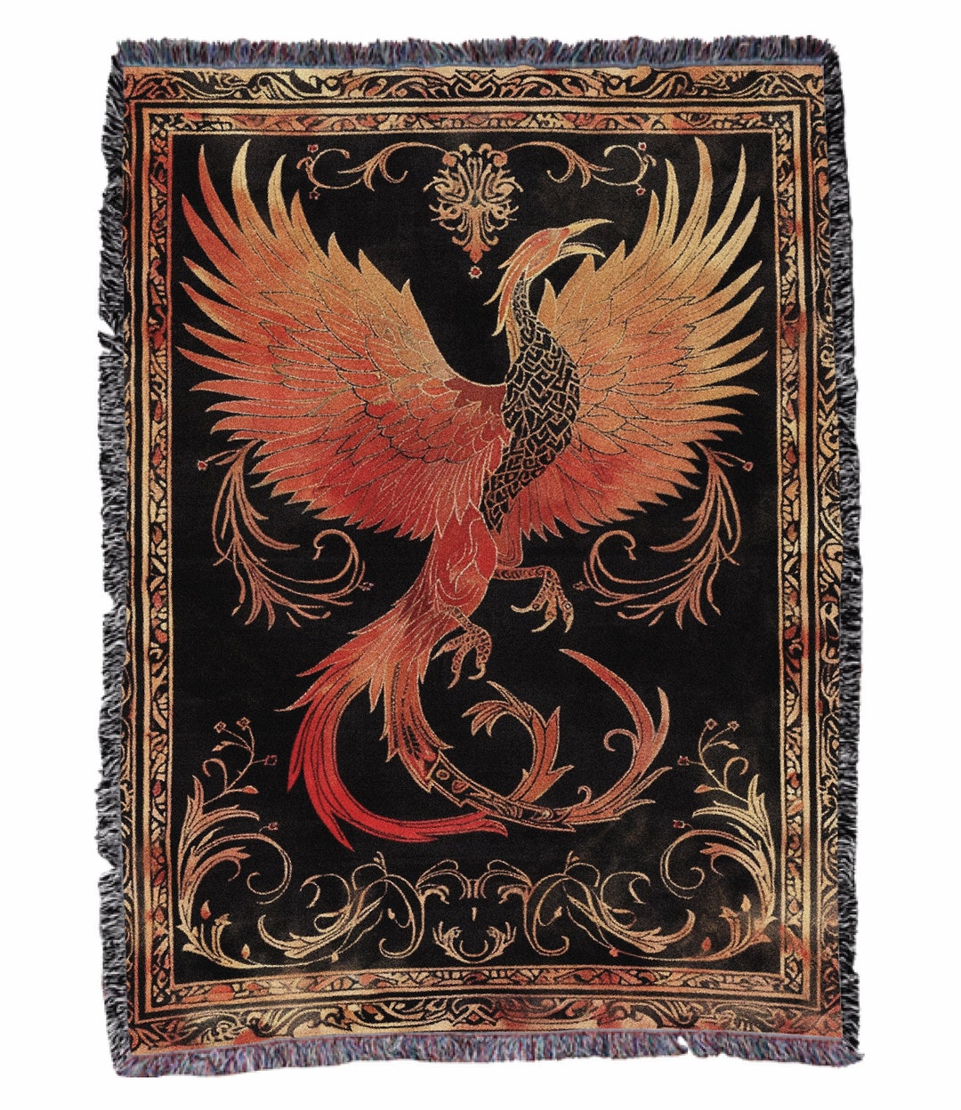 Medieval Phoenix Woven Blanket - Medieval Phoenix Throw Blanket - Phoenix Art Woven Blanket by divineandplayart